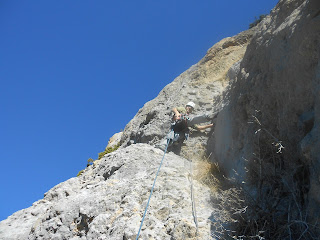 El nano es queixa de les capes de roca chunga que ha d`escarbar per arribar a la roca bona i de lo petits que son els parabolts originals: